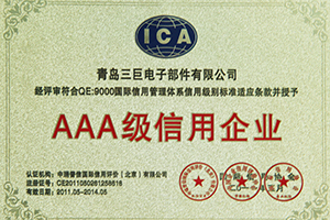 Qingdao Sankyo Electronics Components obtained the AAA credit enterprise by Zhongrui Puxin International Credit Rating (Beijing) Co., Ltd.